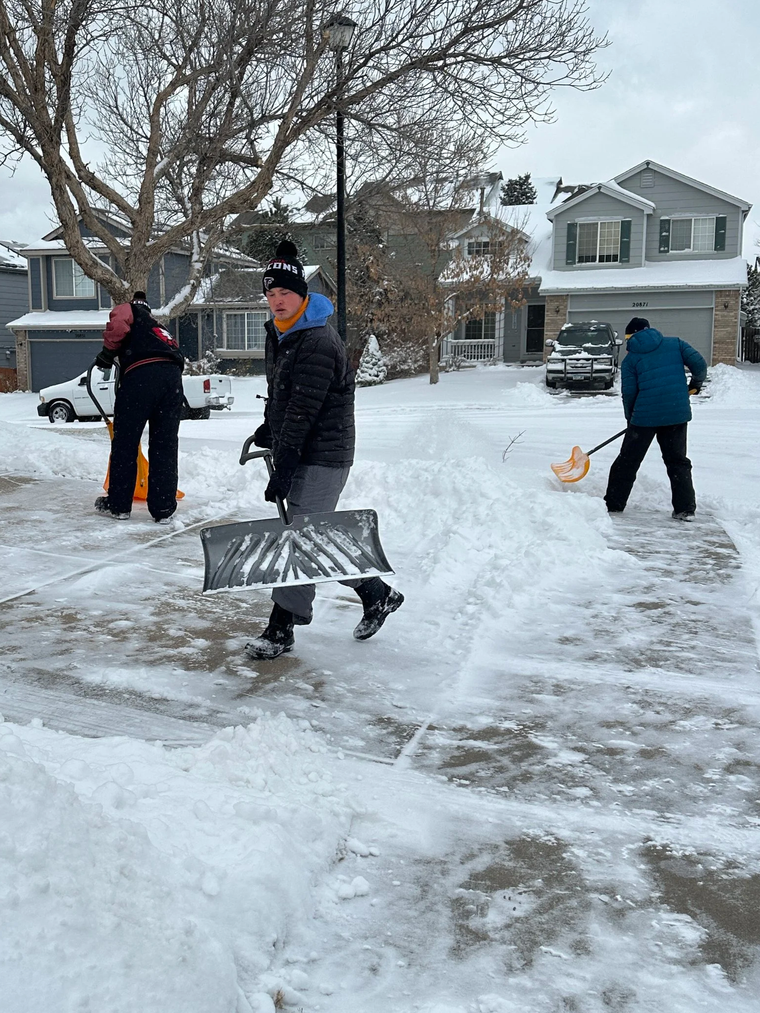 We shovel snow off driveways for those who cannot in the winter months. We typically have 2-3 driveways to shovel when the snow flies. Special jobs include putting up wire to protect the trees from beavers.